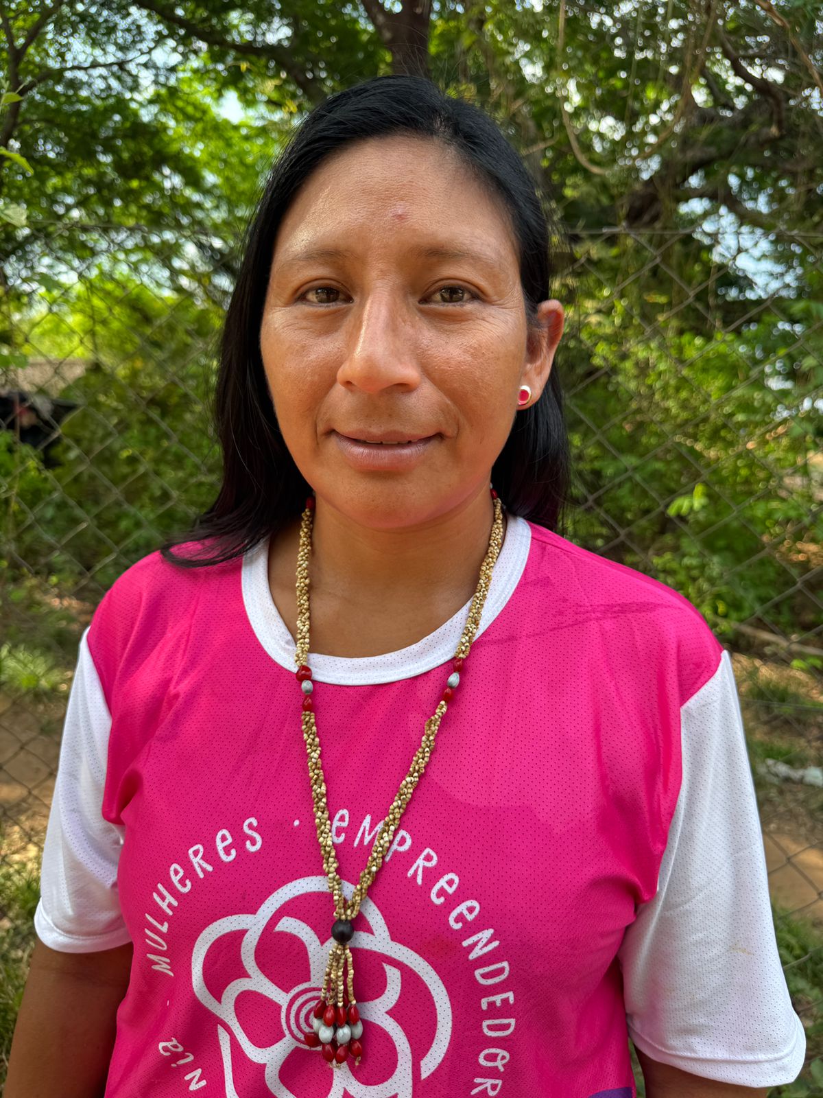 Mulher indígena de 34 anos, aprendeu com sua mãe o saber tradicional do artesanato com capim dourado e fita de buriti. Com habilidade e sensibilidade, ela transforma esses materiais da natureza em belas peças como porta-moedas, chaveiros, porta-joias e carteiras. Cada criação carrega a he