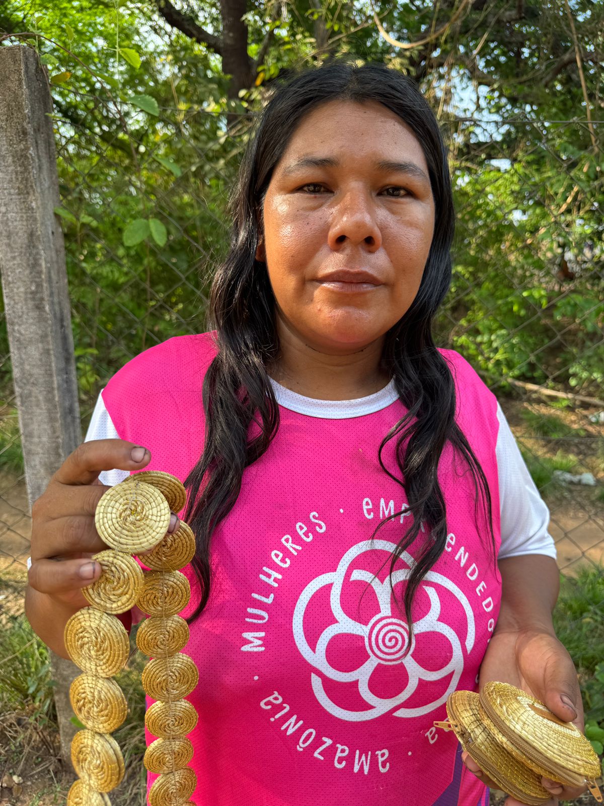 Mulher indígena de 35 anos, aprendeu com sua avó a arte do artesanato tradicional. Com o capim dourado, produz porta-moedas, bolsas e porta-joias que refletem a força e a sabedoria herdadas de suas ancestrais. Cada peça é um símbolo de cultura, memória e identidade.