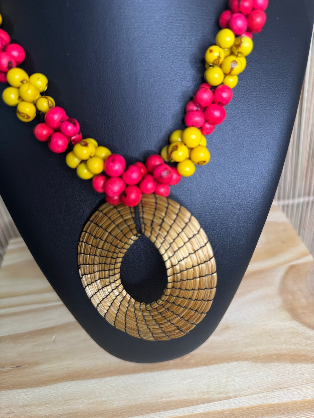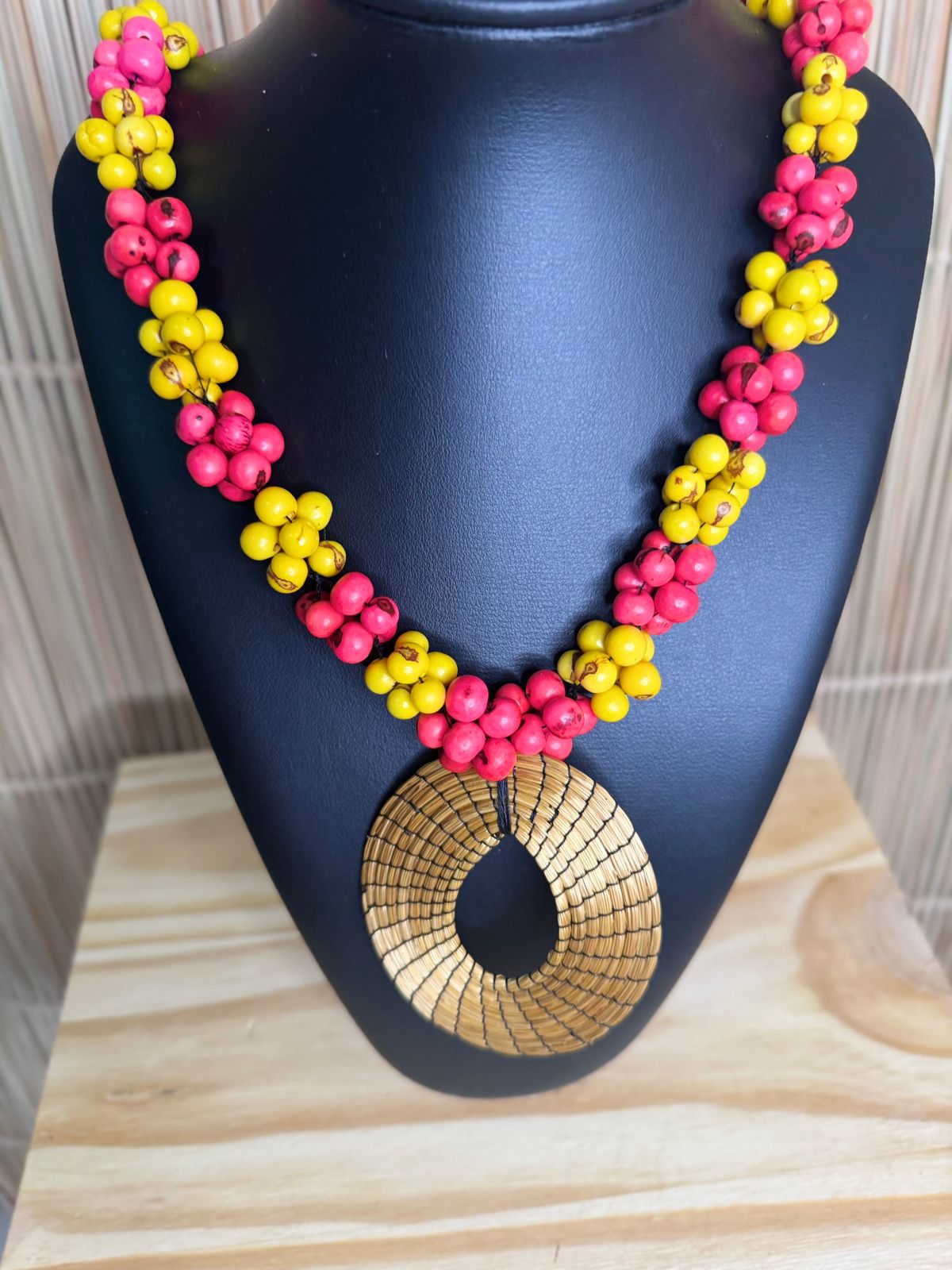 Mulher indígena Xerente, 27 anos, casada e mãe de cinco filhos. Aprendeu a arte do artesanato com sua tia Juditi, guardando e fortalecendo os saberes ancestrais. Produz colares de sementes, chaveiros, porta-moedas e portas de capim-dourado, além de colares de titica, uma semente típica do Cerrado.