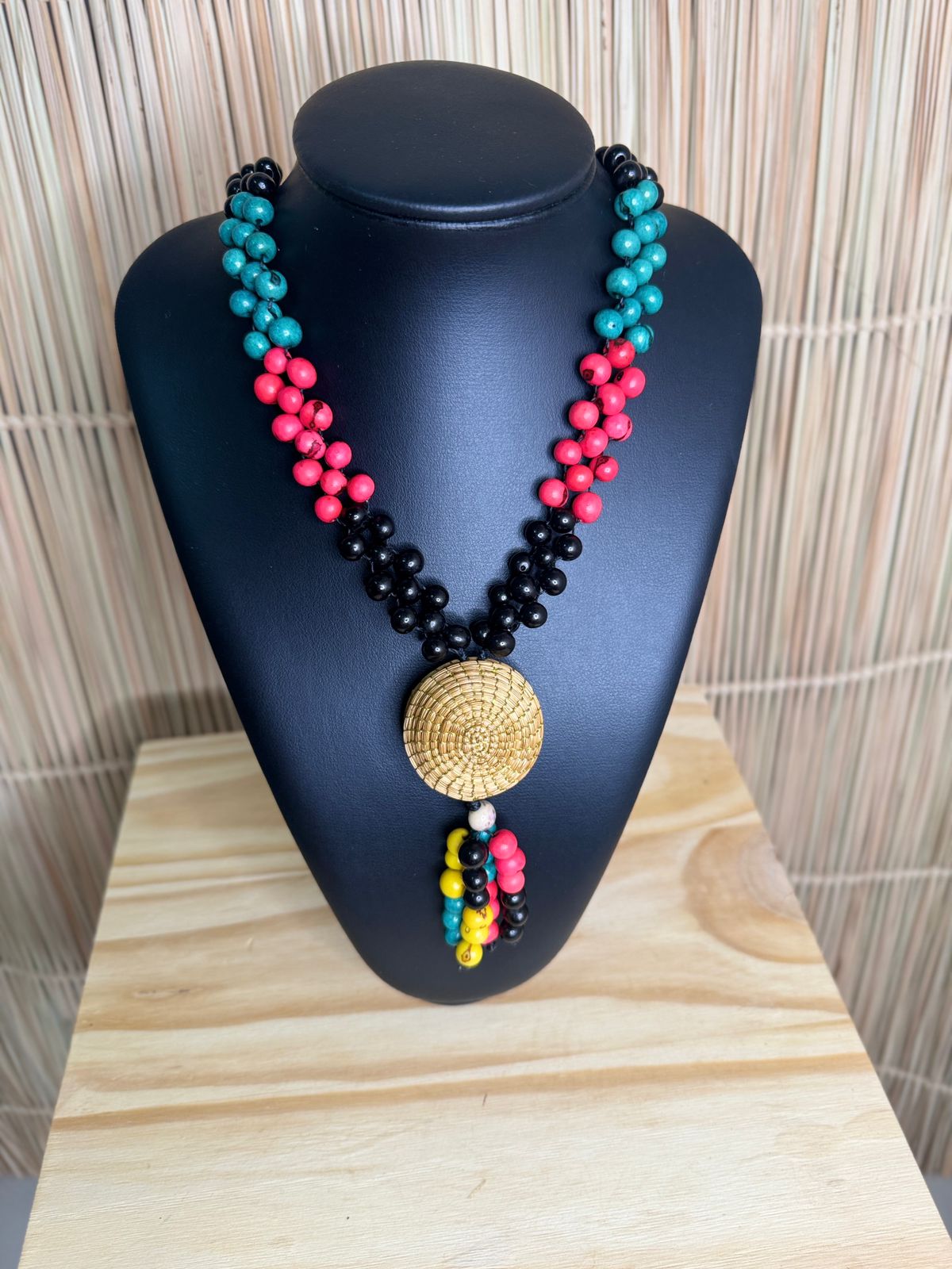 Mulher indígena Xerente, 27 anos, casada e mãe de cinco filhos. Aprendeu a arte do artesanato com sua tia Juditi, guardando e fortalecendo os saberes ancestrais. Produz colares de sementes, chaveiros, porta-moedas e portas de capim-dourado, além de colares de titica, uma semente típica do Cerrado.