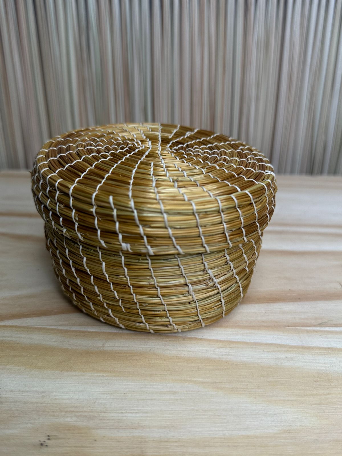 Mulher indígena de 40 anos, é artesã desde os 12. Com talento e dedicação, produz bolsas, porta-moedas, prendedores de cabelo e colares feitos com capim dourado e sementes. Suas criações expressam a beleza da cultura Xerente e a conexão profunda com a natureza.