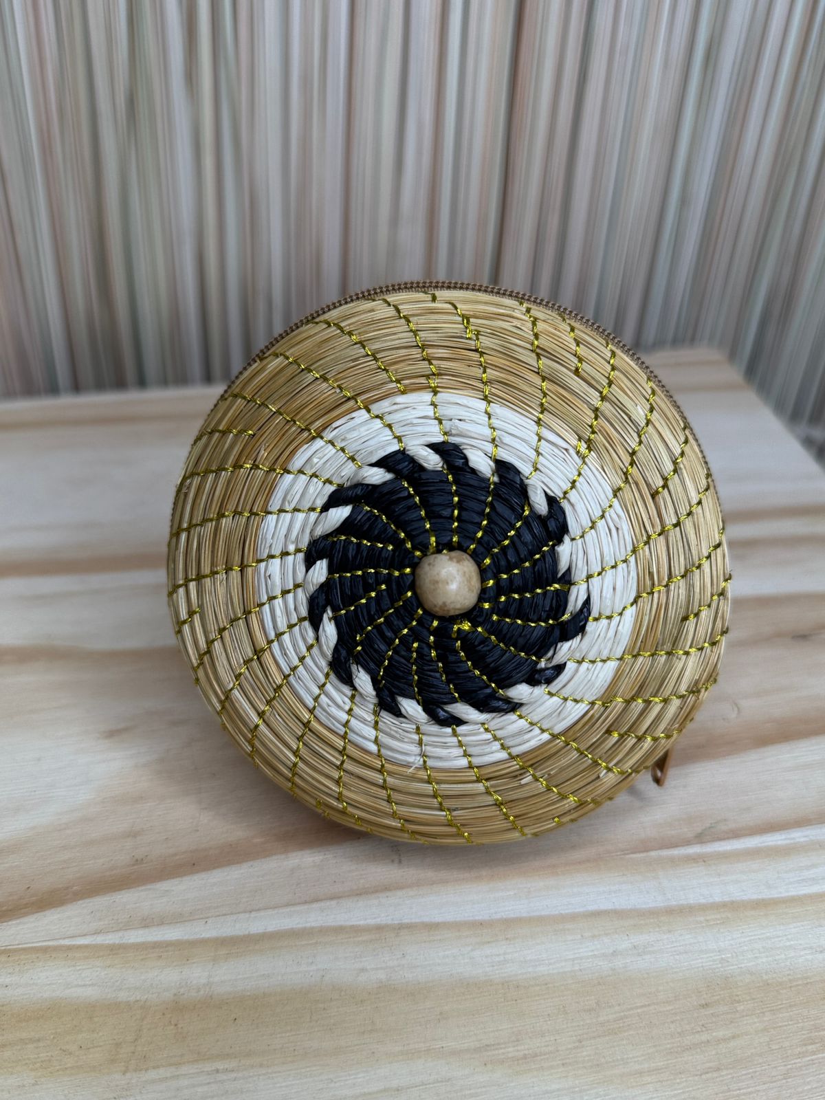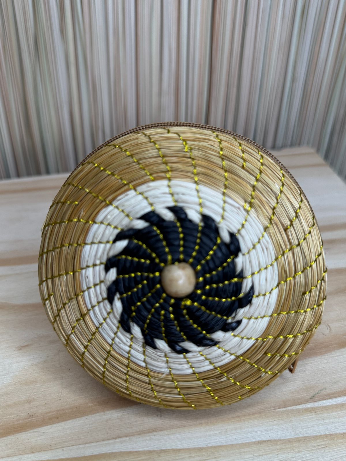 Mulher indígena, 42 anos, casada e mãe de três filhos. Desde os 10 anos, aprendeu com sua família a arte do artesanato tradicional de seu povo. Hoje, transforma elementos da natureza em peças únicas, produzindo colares com sementes da floresta, cestas de palha de buriti e bolsas de capim-dourado.