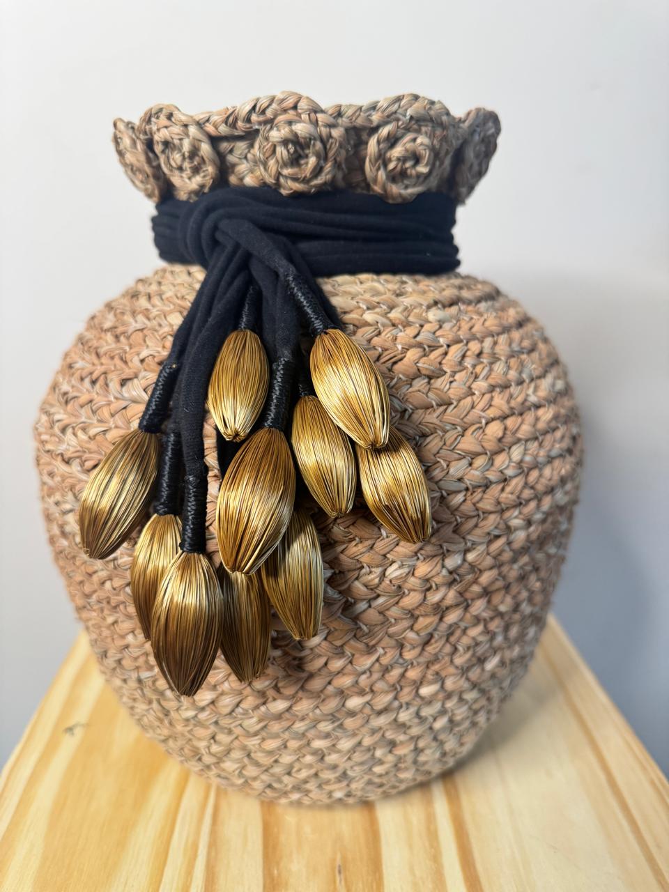Descubra a elegância única do capim dourado, uma fibra natural de brilho dourado intenso, cuidadosamente colhida e trançada à mão por artesãos talentosos. Nossas peças são feitas com amor, respeitando a tradição do artesanato do Jalapão (TO), berço dessa arte que encanta o Brasil e o mundo.